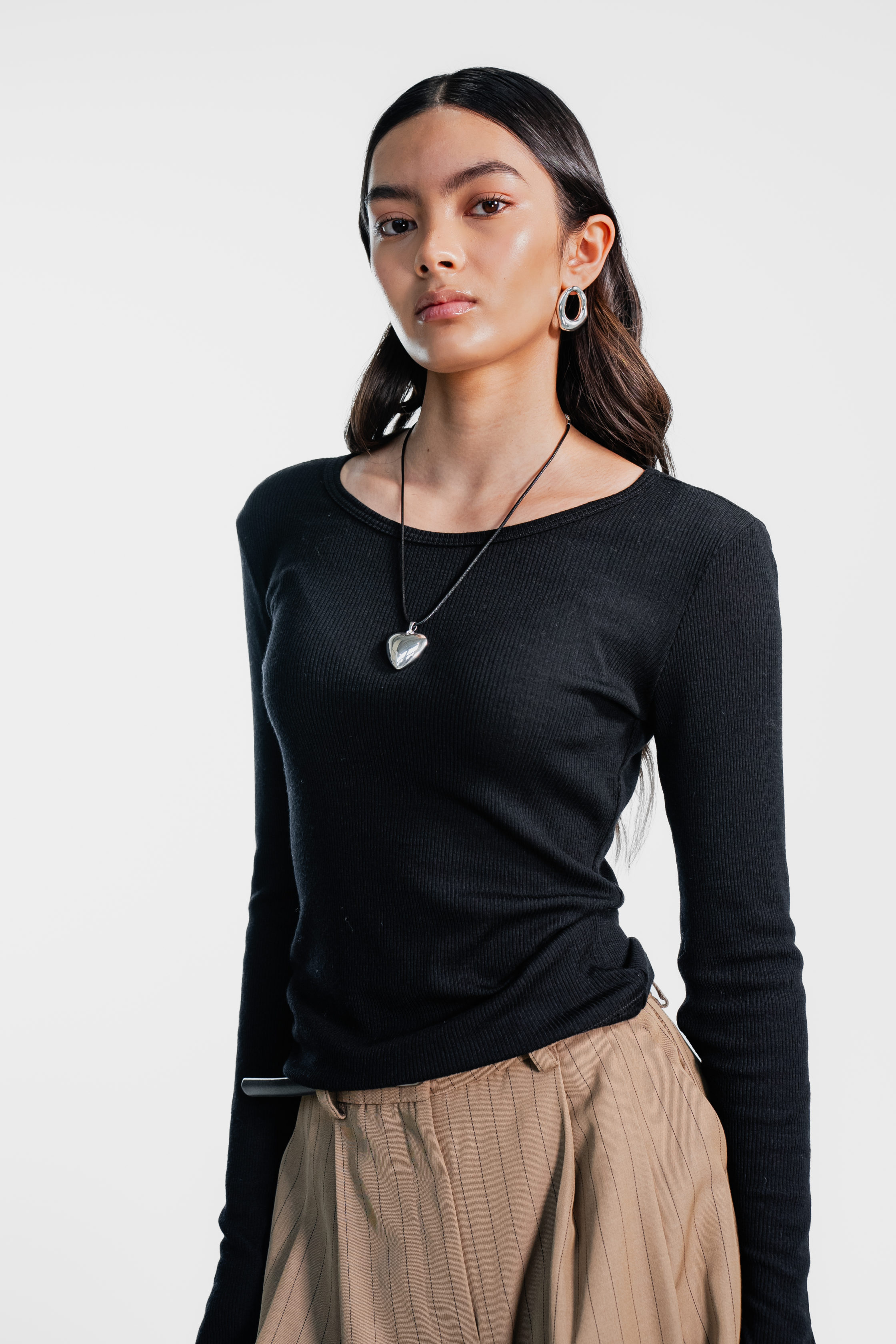 – Classic crew neck and long sleeves for a timeless silhouette.