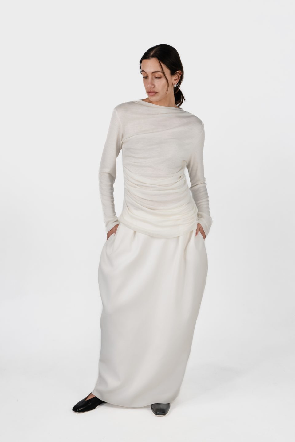 Crafted from 100% ribbed merino wool, the Yaneth Crew Neck Top is the perfect layering staple as the seasons shift. Lightweight yet warm, it offers effortless refinement for cooler days.